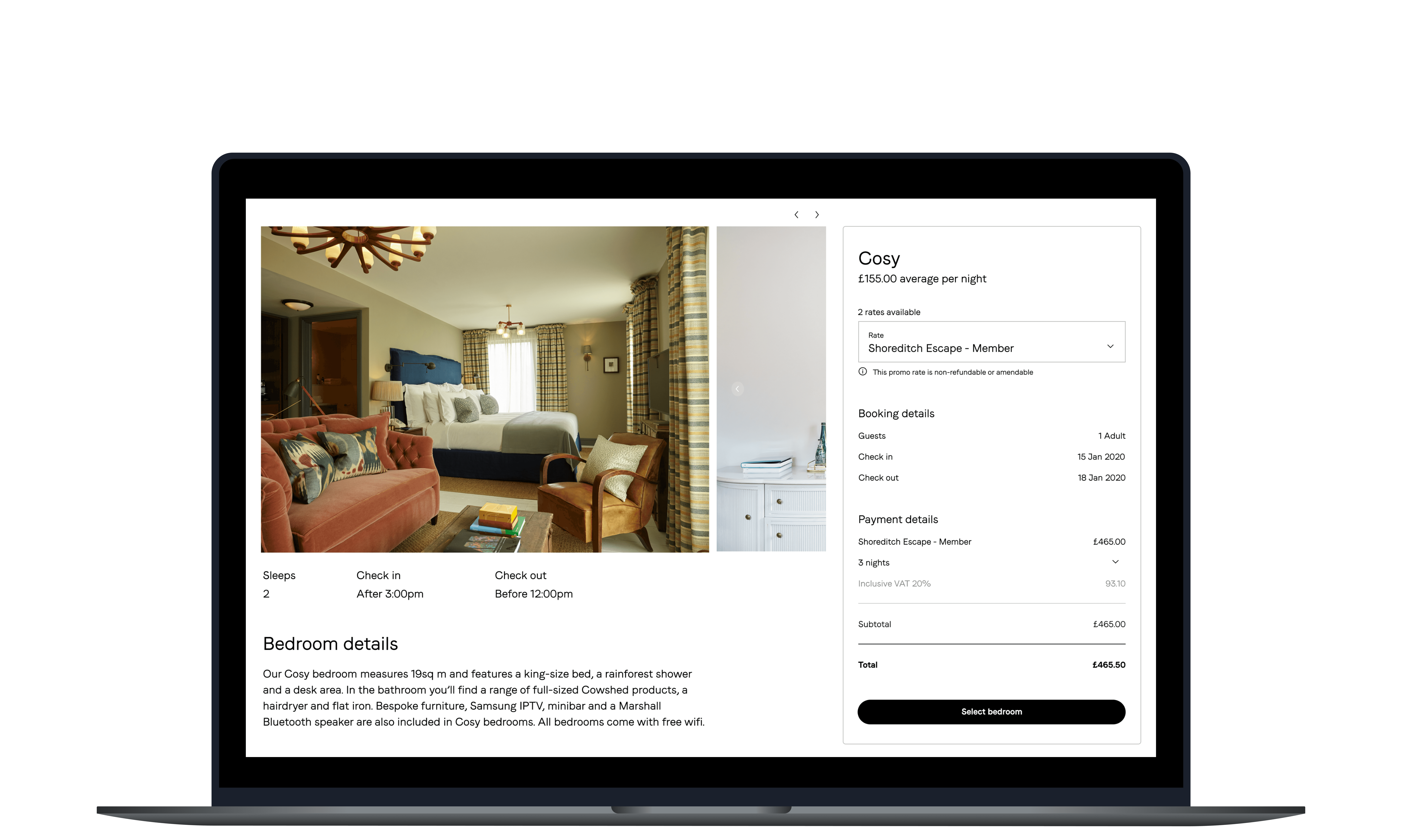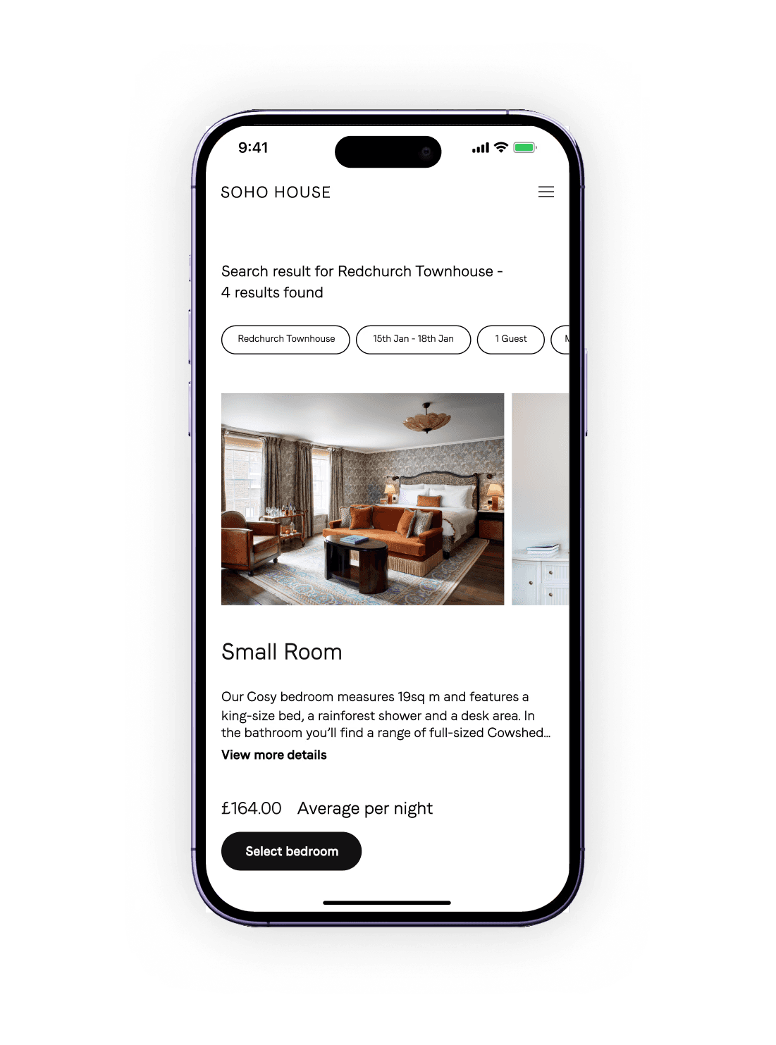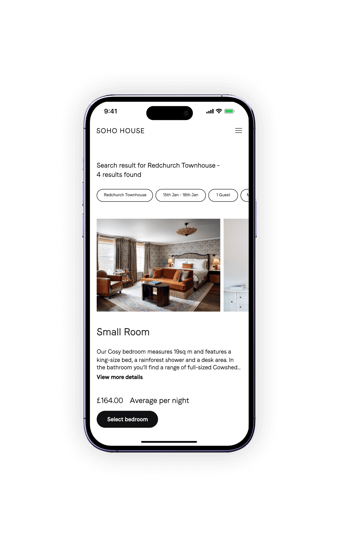 A simplified booking journey that reduces drop-off by making availability, pricing, and payment steps clear from start to finish, for Soho House members.